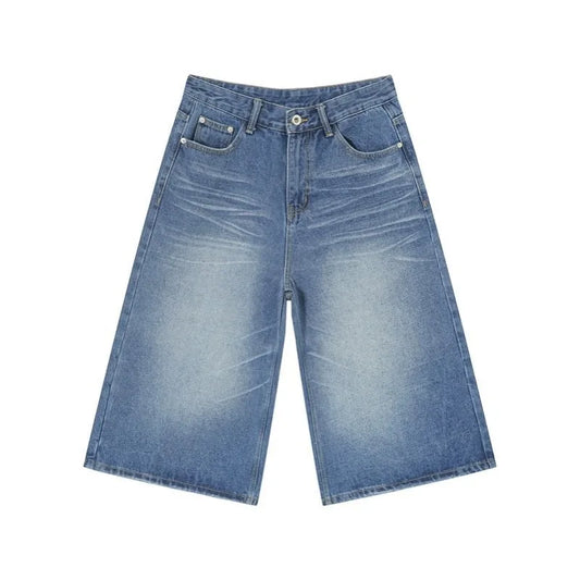 Y2K Retro Baggy Jeans Loose Fit Hip Hop Streetwear Shorts Unisex NZ Cropped Denim Strylez App Virtual Try-On